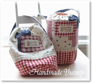 お友達が作ったギャザーバッグ完成品です