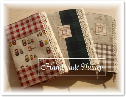 先日作ったブックカバー、柄と作り方をいろいろ変えて追加完成しました