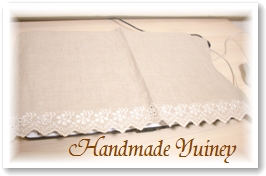CHECK&STRIPEのオリジナルリネンにスカラップの布に