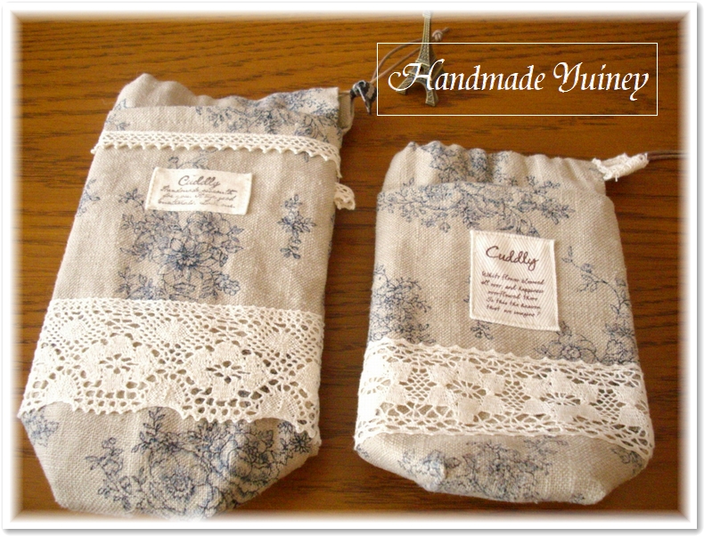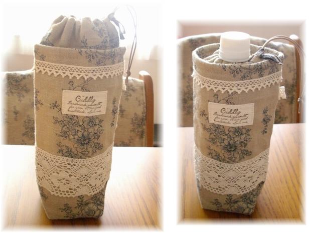 ジャーマンファブリック風の布で作った280mlのペットボトルケースを