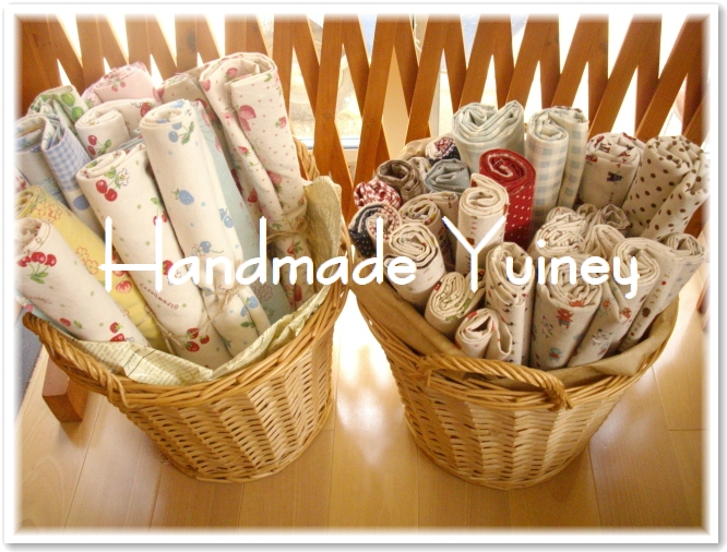 大好きでよく使う布をお店屋さんのようにカゴに挿してみました