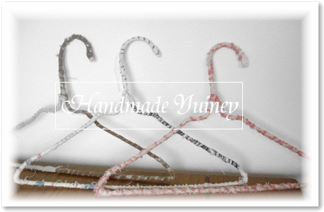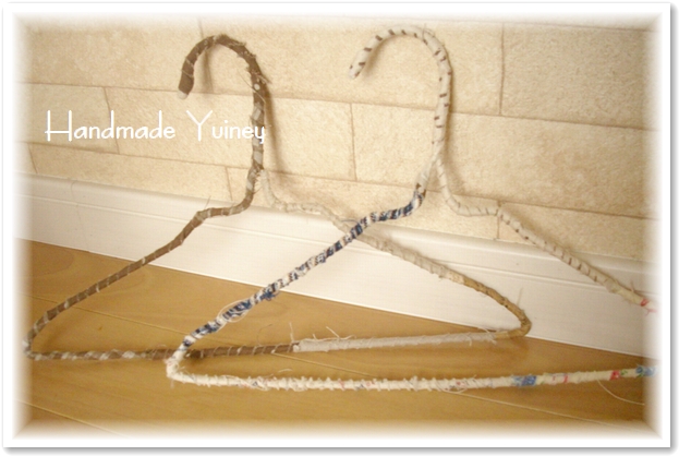 先日作ってもらったくるくる布を巻いたハンガーは