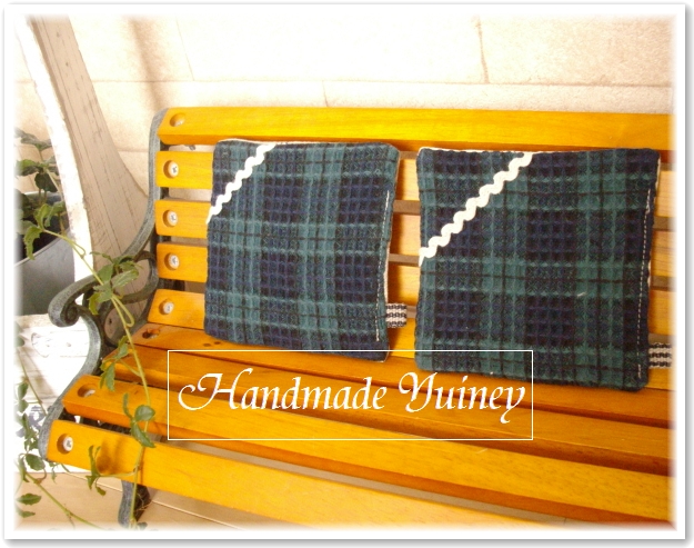 麻綿チェックとドットのリバーシブルなど